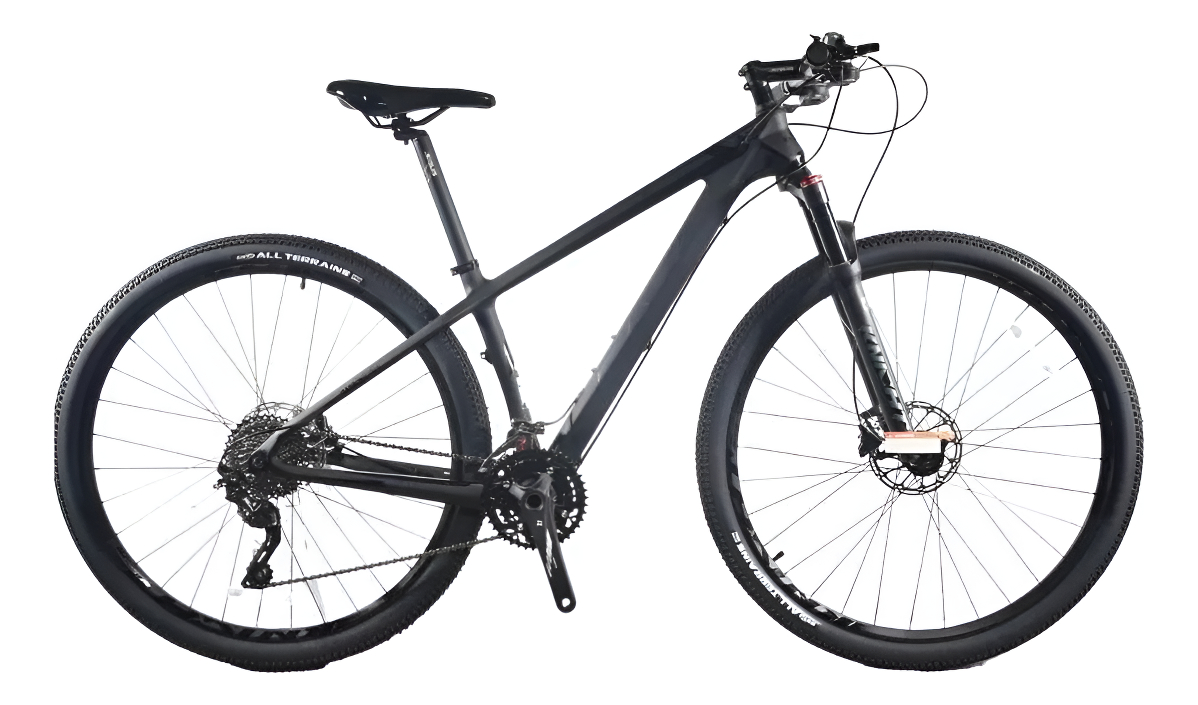 Cuadro de Carbono T700.Horquilla SAVA c/Bloqueo hidraulico, recorrido de 100mm.Cambios Full Shimano Deore, 30 velocidades.Frenos Hidraulicos Shimano Altus.Cadena KMC X10 R.Rodado 29 x 2.10, Cubierta CST.