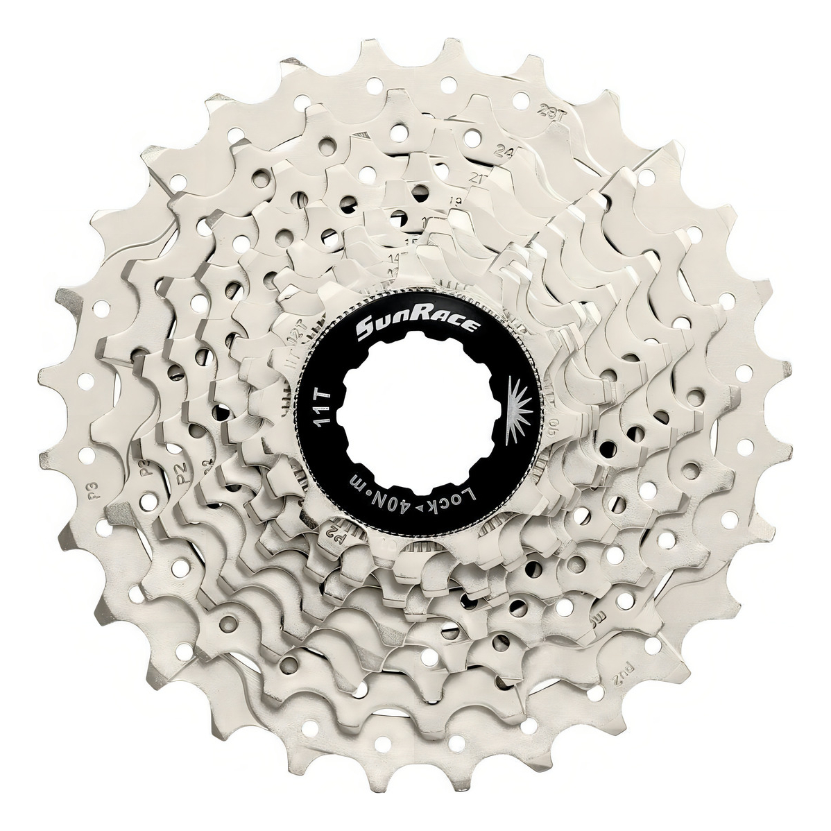 Cassette de bicicleta Sunrace Road con la tecnología Sunrace ‘Super Fluid drive’, para ayudar a garantizar cambios suaves y precisos en todo momento.